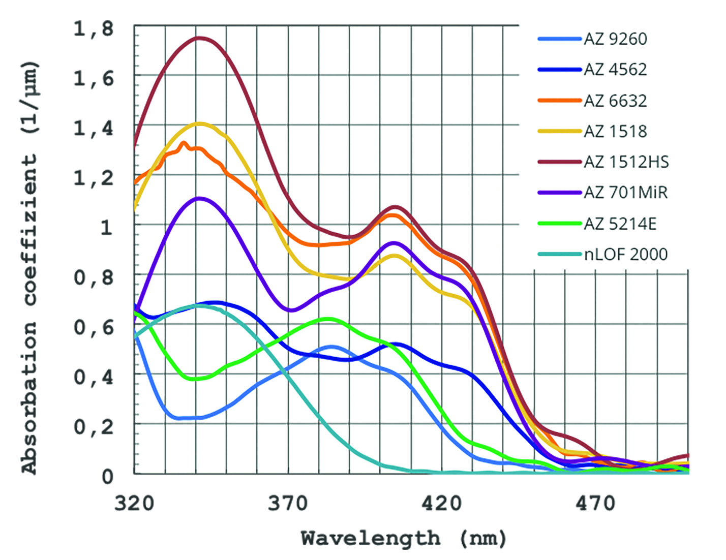 Spektrale Empfindlichkeit von Fotolacken